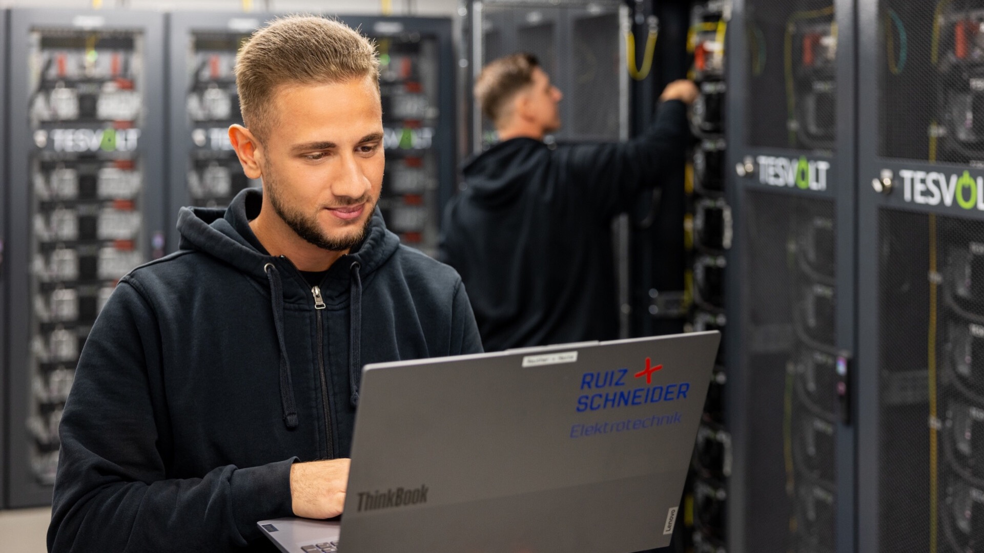 Die RUIZ & SCHNEIDER GmbH hat gemeinsam mit der Agentur Punktmacher GmbH ein Foto- und Videoshooting realisiert, um das Thema Lastspitzenkappung mittels Batteriespeicher anschaulich zu kommunizieren. Die neuen Aufnahmen zeigen sowohl die Geschäftsführer Christian und Marcus Schneider als auch Mitarbeitende im Einsatz sowie installierte Speichersysteme.